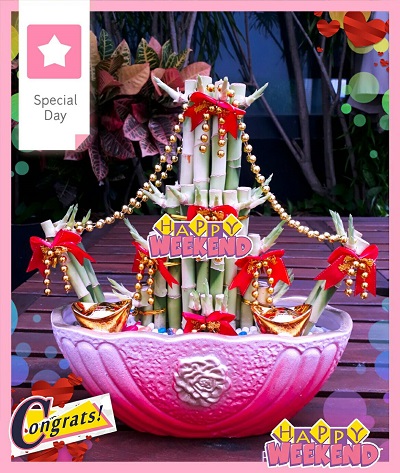 【使用花材】一帆風順開運竹、瓷盆、飾品