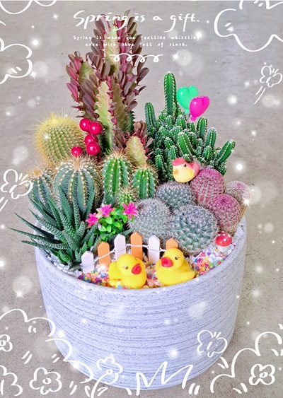 多肉植物.擺飾公仔.盆器花色均由設計師專業搭配