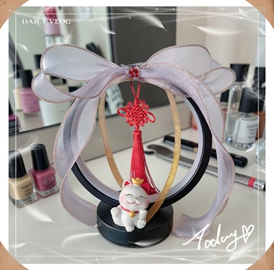 【使用花材】中直徑USB LED燈圈.陶瓷招財貓.吉祥吊飾