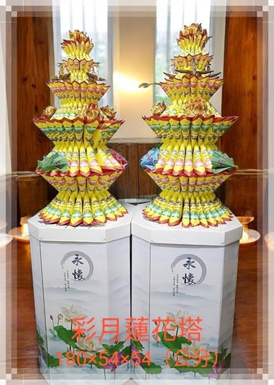 首頁 > 告別追思花禮 > 追思蓮花塔.紙紮工藝品(耐久) > 【gss513】告別彩月蓮花寶塔(1對/2個)[標準落地大型]底座