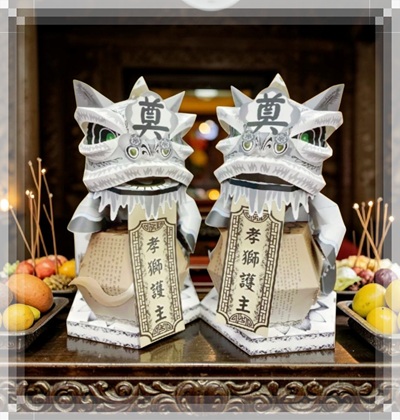 首頁 > 告別追思花禮 > 追思蓮花塔.紙紮工藝品(耐久) > 【gss523】孝獅謢主[靈桌型](1對/2個)