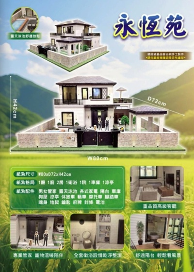 【使用花材】紙紮(豪宅/渡假宅/快樂農場菜園/和風湯屋/溫泉風呂等.可擇一風格)