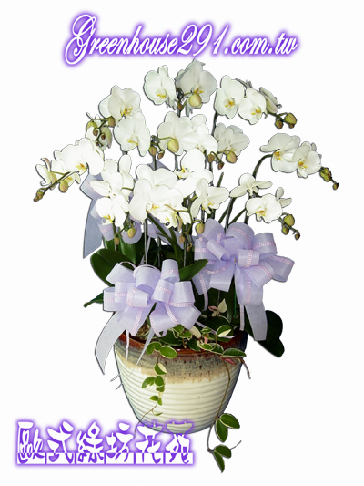 【使用花材】白花黄心蝴蝶蘭(10株).盆器.飾品