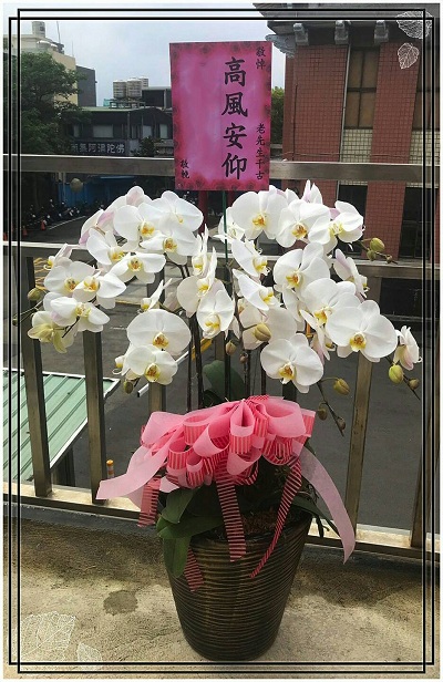 【使用花材】7株蝴蝶蘭、高腰瓷盆