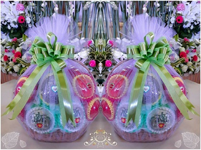 【使用花材】當季綜合水果X2.緞花.籐籃