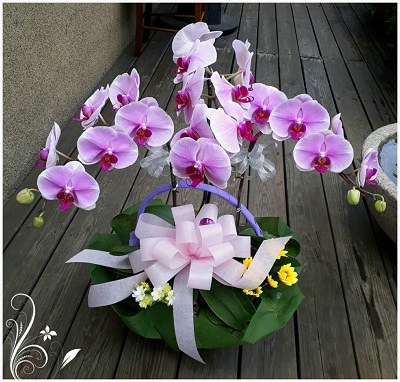【使用花材】3株蝴蝶蘭(花色依季節搭配)、盆器