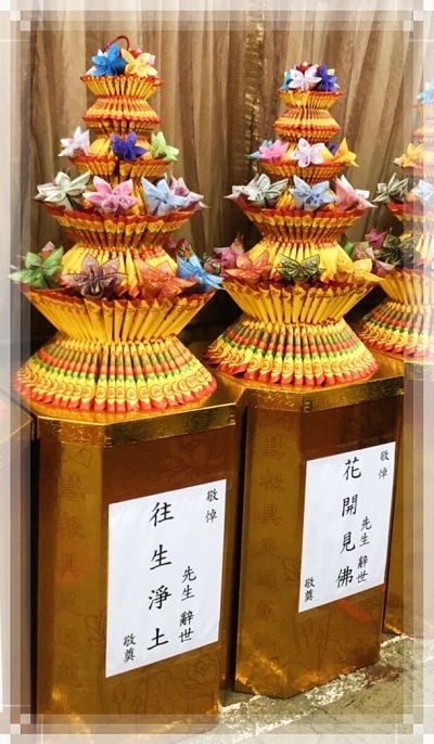 【使用花材】紙紮蓮花.紙紮彩花.標準落地大型金款底座