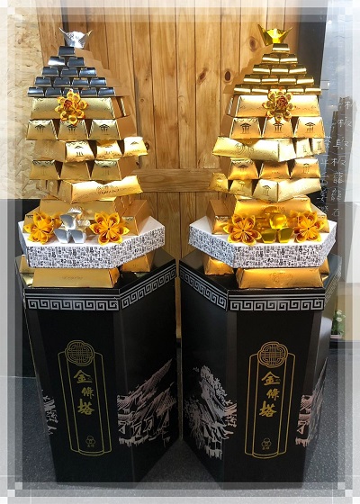 【gss305】告別追思紙紮[金月金磚元寶花塔](1對/2個)[標準落地大型]底座