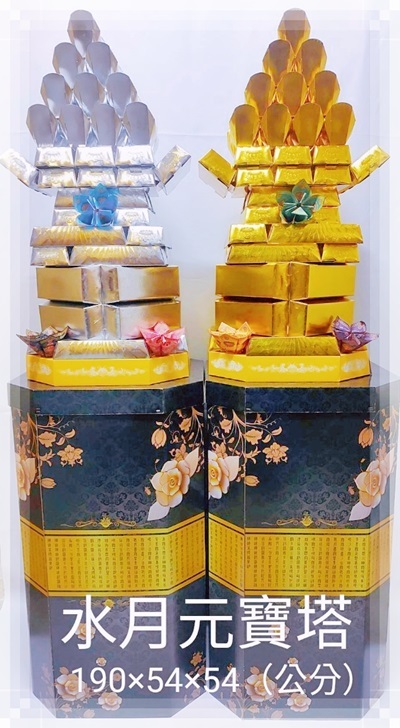 【gss307】告別追思紙紮[水月金磚元寶花塔](1對/2個)[標準落地大型]底座