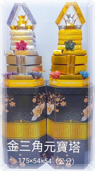 【gss309】告別追思紙紮[金三角金磚元寶花塔](1對/2個)[標準落地大型]底座