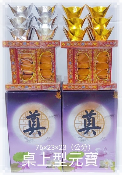 【使用花材】紙紮金銀元寶.紙紮金磚條.桌上型底座