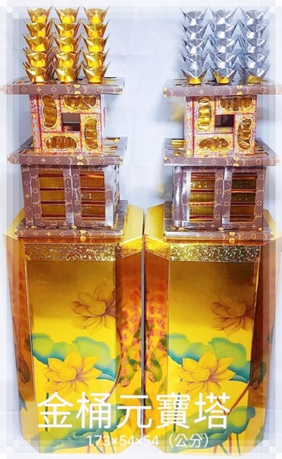 【gss319】[金款底座]告別追思紙紮[金磚條元寶塔](1對/2個)[標準落地大型]底座