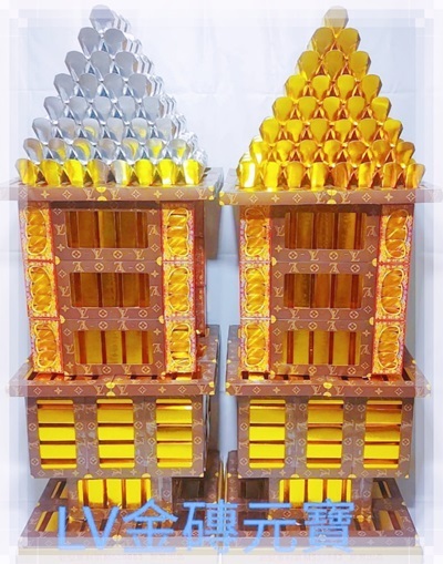 【使用花材】紙紮金銀元寶.紙紮金磚條.落地特殊LV款紙紮金磚條底座