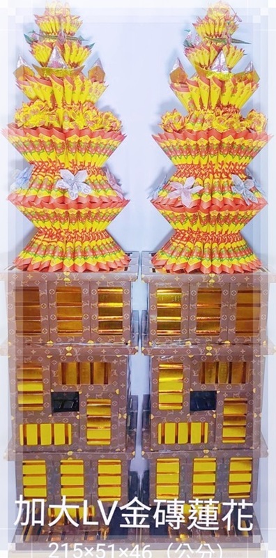 【gss322】[加大特殊LV金磚條底座]告別追思蓮花寶塔(1對/2個)[加大落地特殊LV款紙紮金磚條]底座