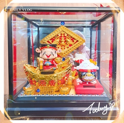 【使用花材】玻璃框.招財喜慶財神爺飾品.招財喜慶招財貓飾品.吉祥招財飾品